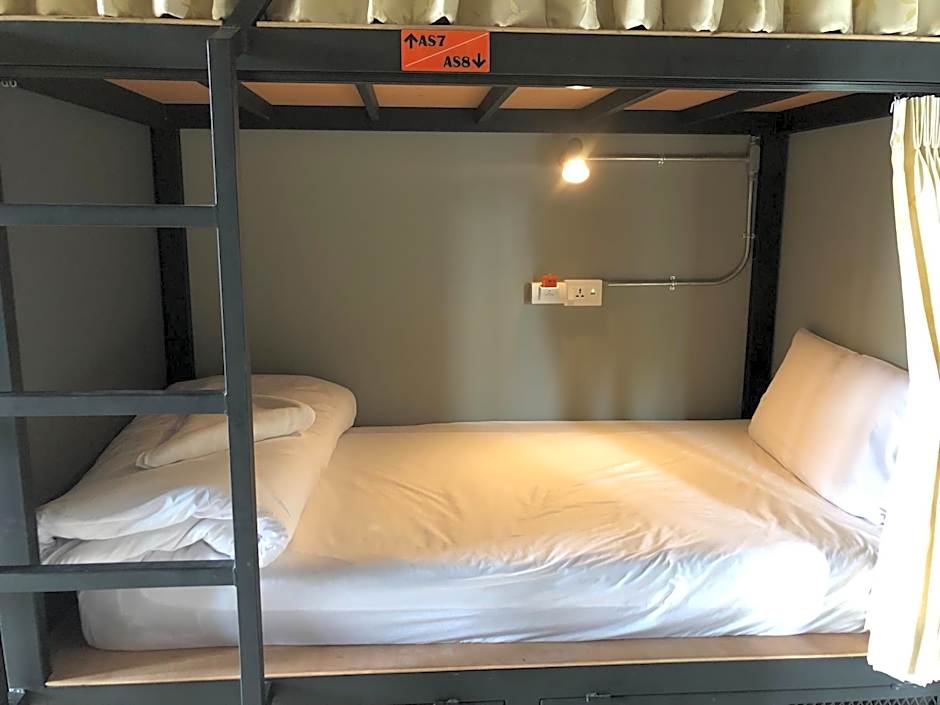 This bed in dormitory features a balcony and air conditioning.